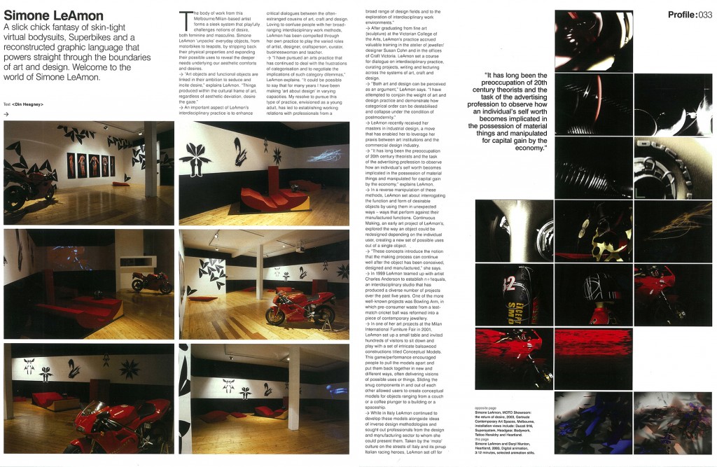 Widely published Simone LeAmon’s work and projects appear in art, design, fashion and culture titles across print and digital media.