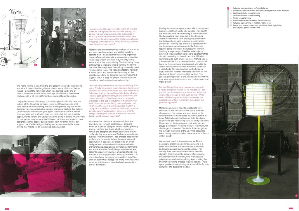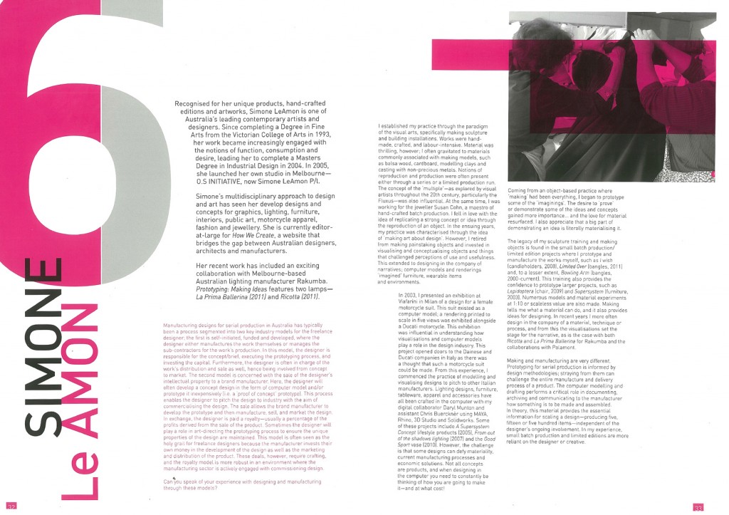 Excerpt from exhibition catalogue to Prototyping: Making Ideas / Jam Factory Craft and Design Centre / South Australia / 2011
